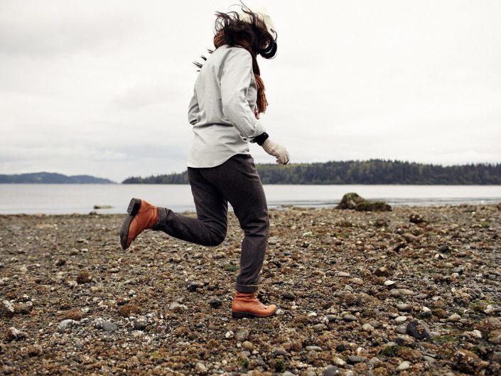 A gray cat slinks past a wooden house. There’s something a little intimidating attempting to describe.